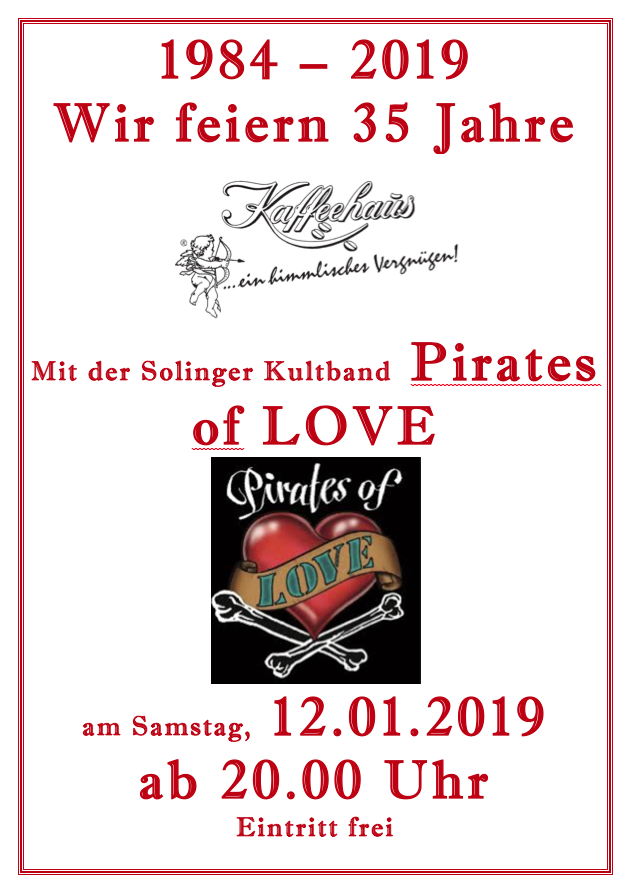 Wir feiern 35 Jahre Kaffeehaus Solingen mit der Solinger Kultband Pirates of Love